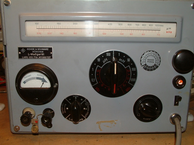 Rohde+Schwarz LARU Spulen, Induktivitätsmessgerät, 0,1µH bis 1H, Resonanzprinzip, d.h. sehr gutes Messverfahren.