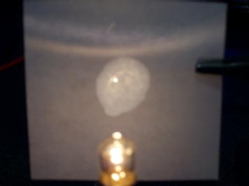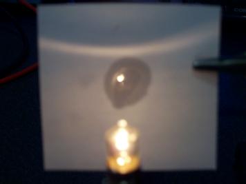 In der Mitte zwischen den beiden Glühlampen wird ein Blatt Papier mit einem Tropfen Öl aufgestellt.