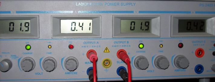 Eine zweite baugleiche Glühlampe wird von einem stellbaren Gleichstromversorgungsgerät betrieben und deren Strom und Spannung gemessen.