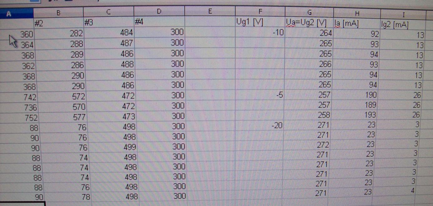 Die durch g2 und die Anode fließenden Ströme werden vom "AA" an Kanal #1 und Kanal #2 gemessen. Die Anodenspannung an Kanal #3. Zusätzlich wird die Raumtemperatur innerhalb des AA bestimmt.