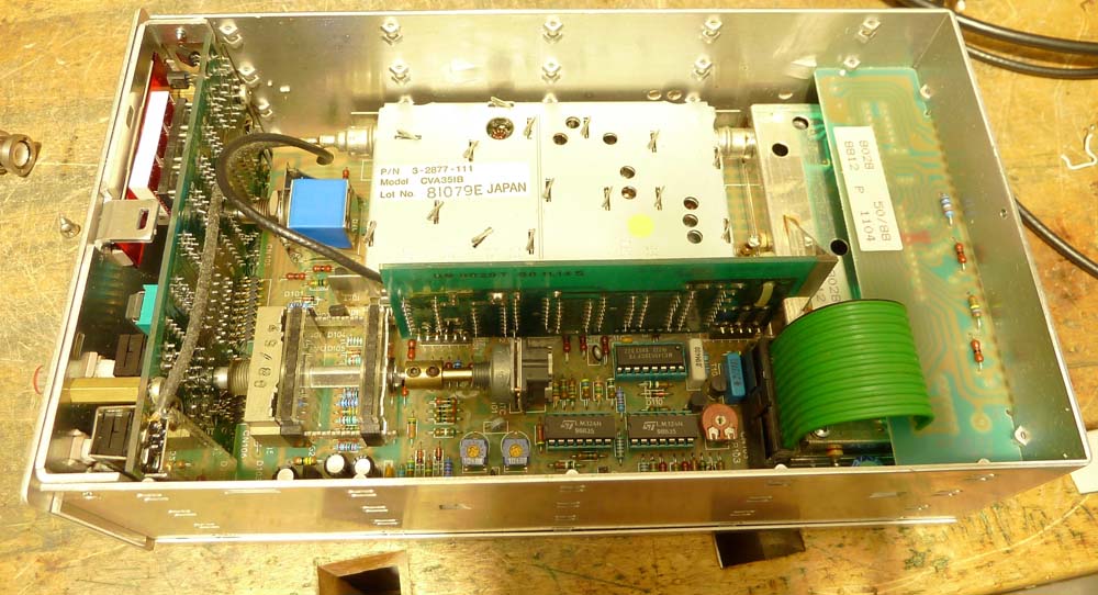 Der Frequenzbereich geht offiziell von 500kHz bis 500MHz, wobei das Gerät auch bei tieferen Frequenzen noch misst, aber die Genauigkeit ist nicht garantiert. Die Bandbreite ist umschaltbar und beträgt wahlweise 12.5kHz oder 250kHz. Der dargestellte Frequenzbereich ist in kalibrierten Stufen von 50kHz/Div bis 50MHz/Div wählbar und die Mittenfrequenz wird mit einem 10-Gang-Poti eingestellt. Die Mittenfrequenz wird auf dem Display in MHz angezeigt, somit braucht man für eine genauere Frequenzanzeige einen Eichmarkengeber oder Signalgenerator mit genau bekannter Frequenz. Der Anzeigebereich beträgt 80dB, garantiert ist eine Dynamik von 70dBm was ein guter Wert ist und in der Praxis völlig ausreicht. Eingangsseitig gibt es 4 zuschaltbare 10dB-Abschwächer, was einen gesamten Messbereich von ca. 110dB ergibt (-27dBm .. +13dBm für Vollaussteuerung). Mit dem zuschaltbaren Videofilter lässt sich das Rauschen auf der Anzeige abschwächen.