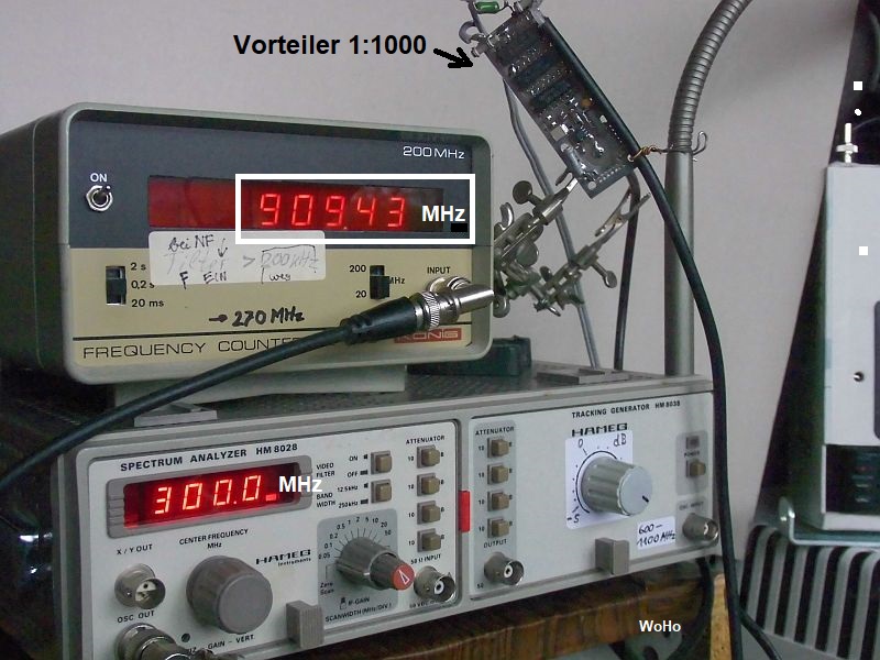 Einen Frequenzzähler, der den Bereich verarbeiten kann, besitze ich nicht. Wohl habe ich einen Scanner der 806 bis 960 MHz empfangen kann. Dessen Frequenzaufbereitung wird mit einem PLL-Synthesizer gemacht. Das ist bis auf ein paar kHz genau genug...
