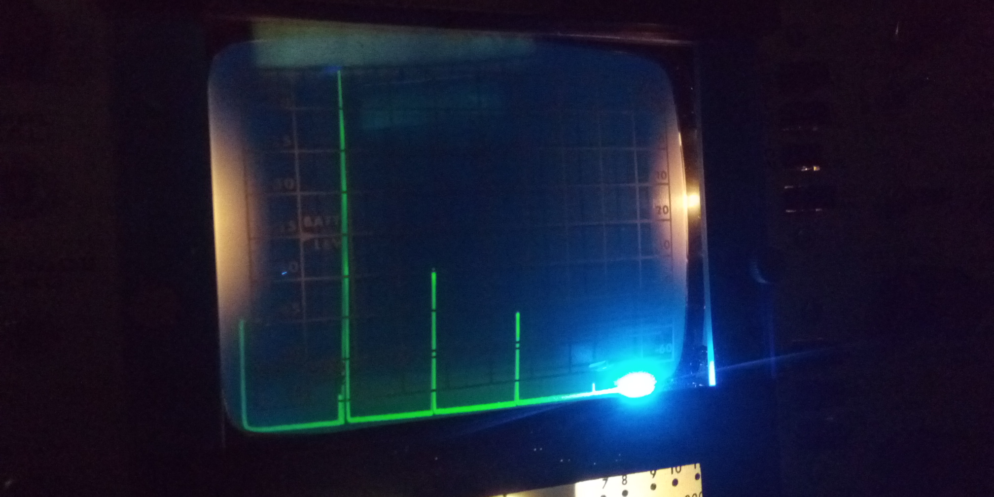 Geht doch! Nach 2 Stunden ist die Frequenz relativ stabil und der Raum sollte abgedunkelt sein. Alles analog und der Speicher ist durch das Nachleuchten verwirklicht.