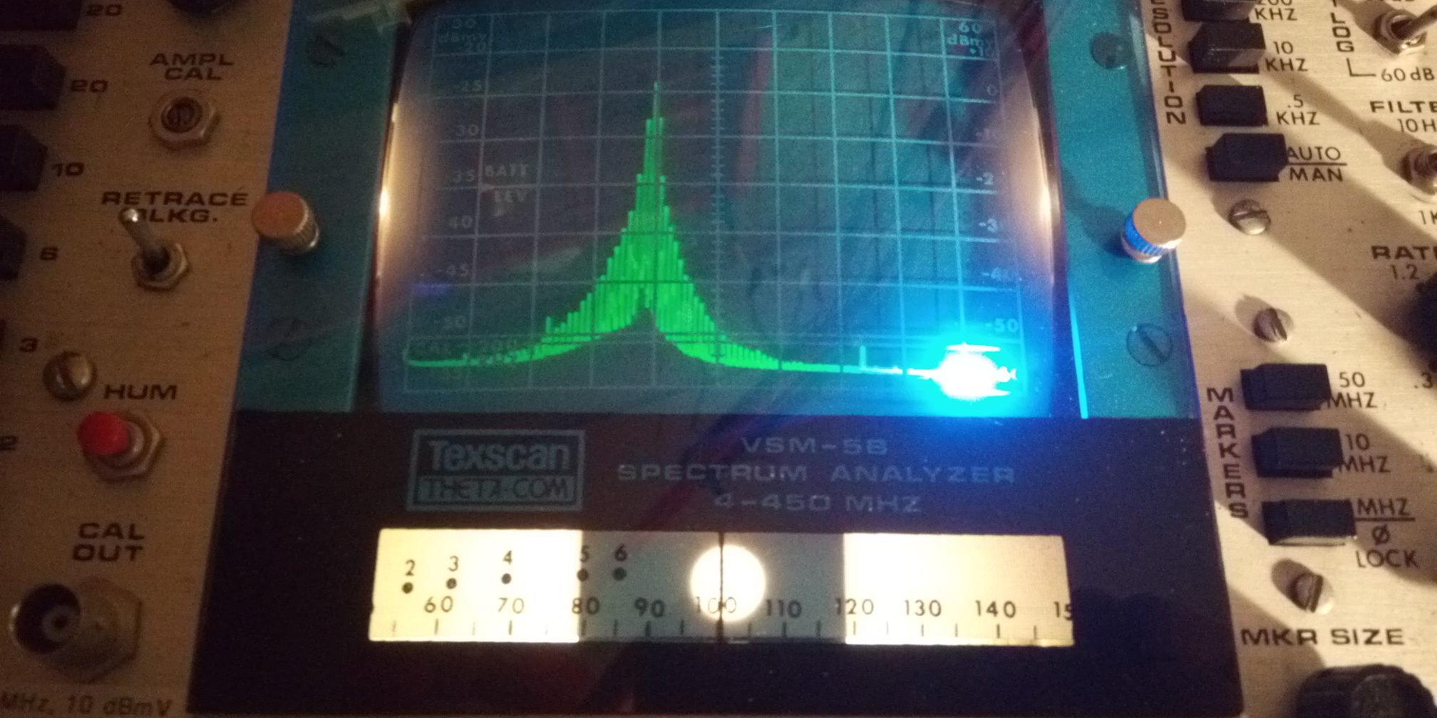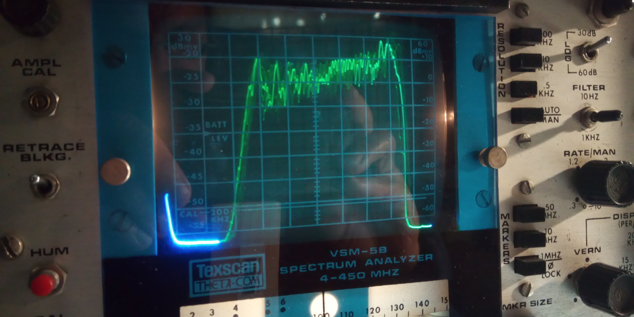 Man lernt aber eine Menge dabei, wie sich analoge Filter verhalten. Man kann mit dieser museumreifen Kiste tatsächlich das Spektrum eines FM-Stereosignals einigermaßen erkennen, wenn die Abtastgeschwindigkeit und die Filterbandbreite entsprechend eingestellt wird.