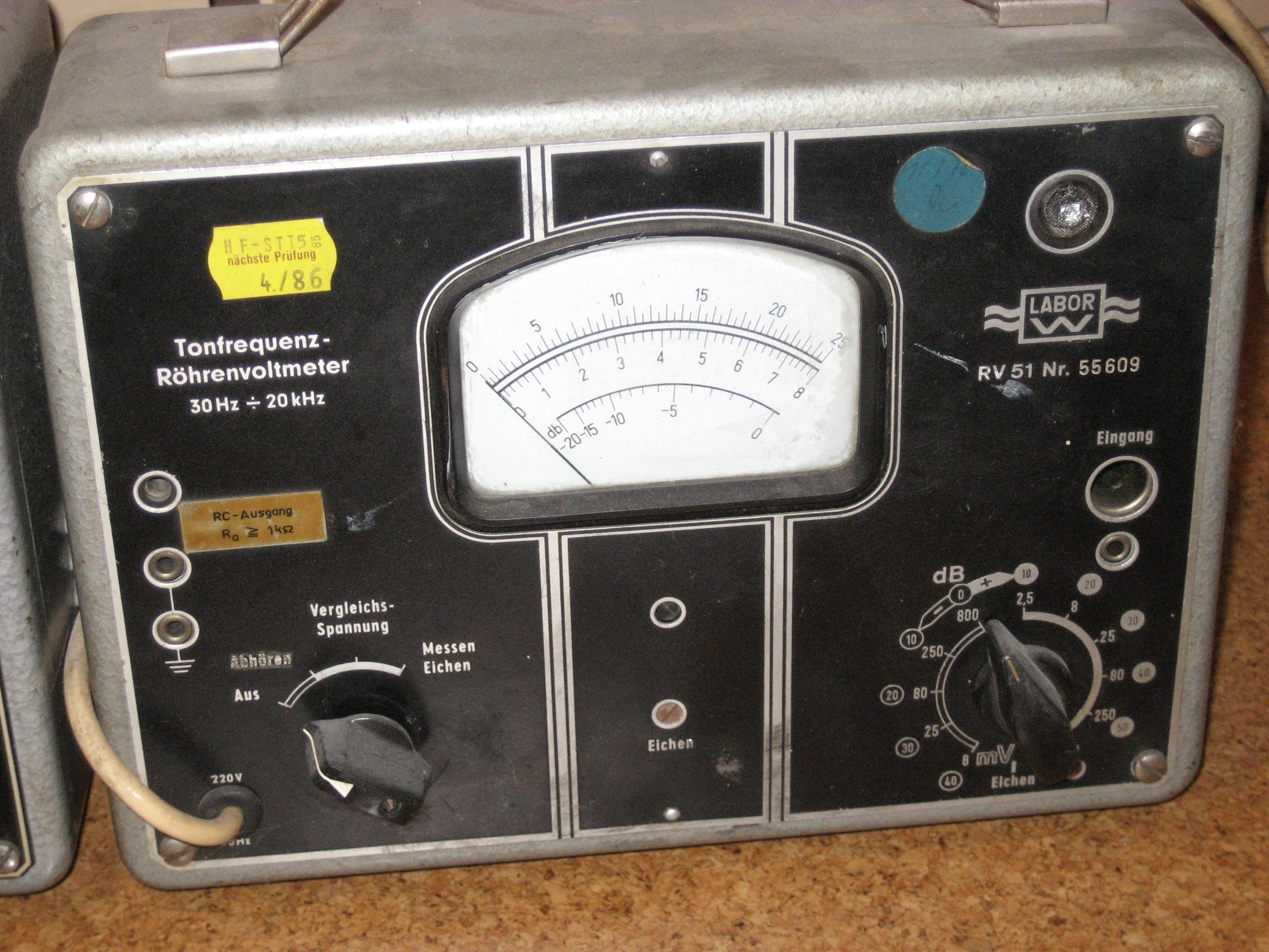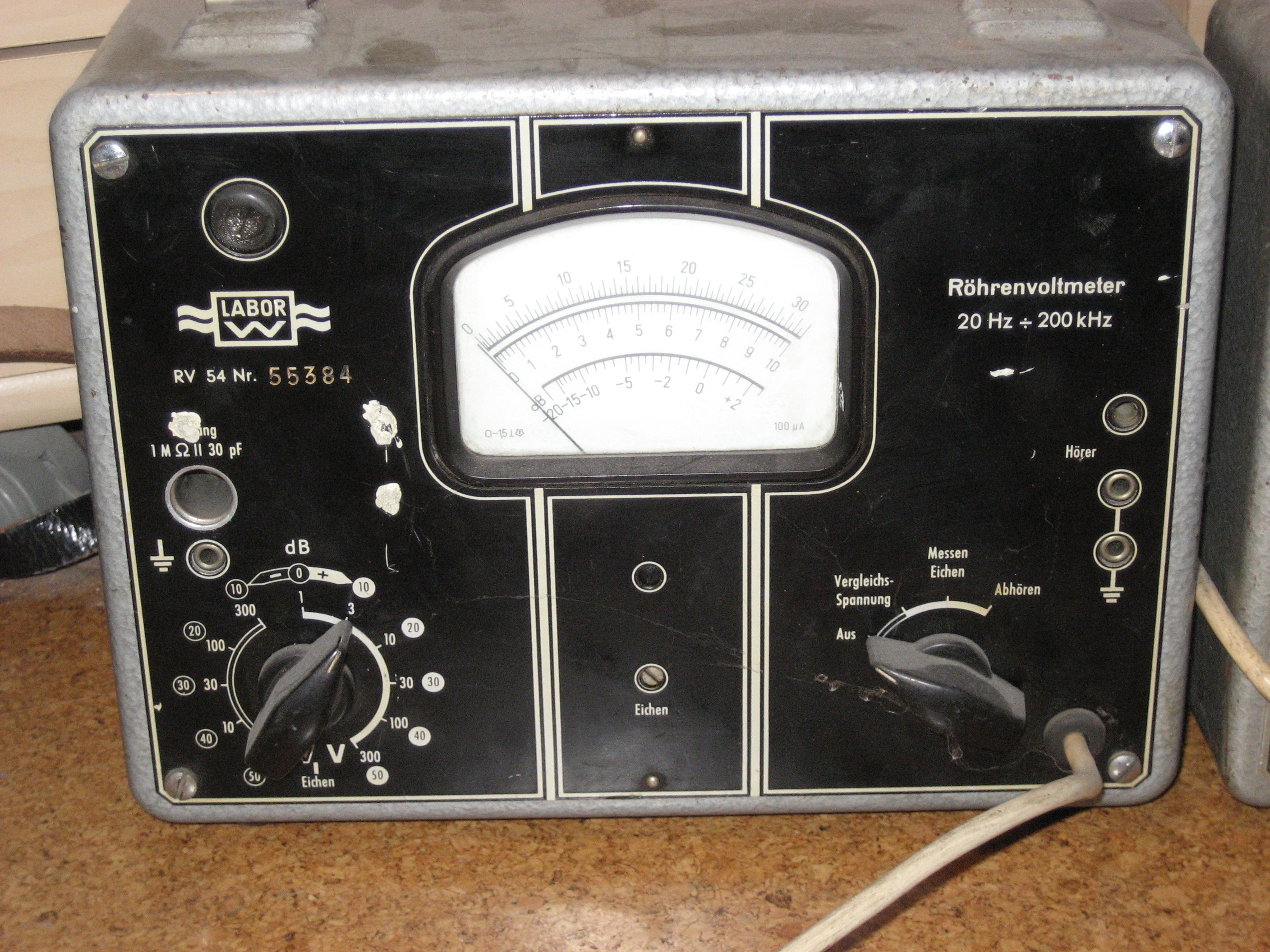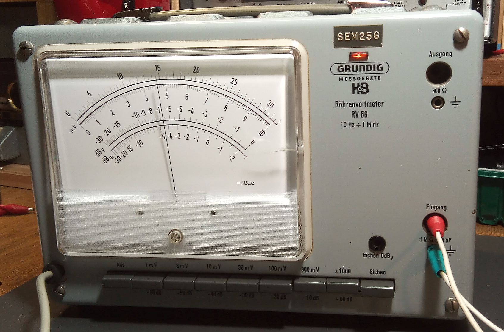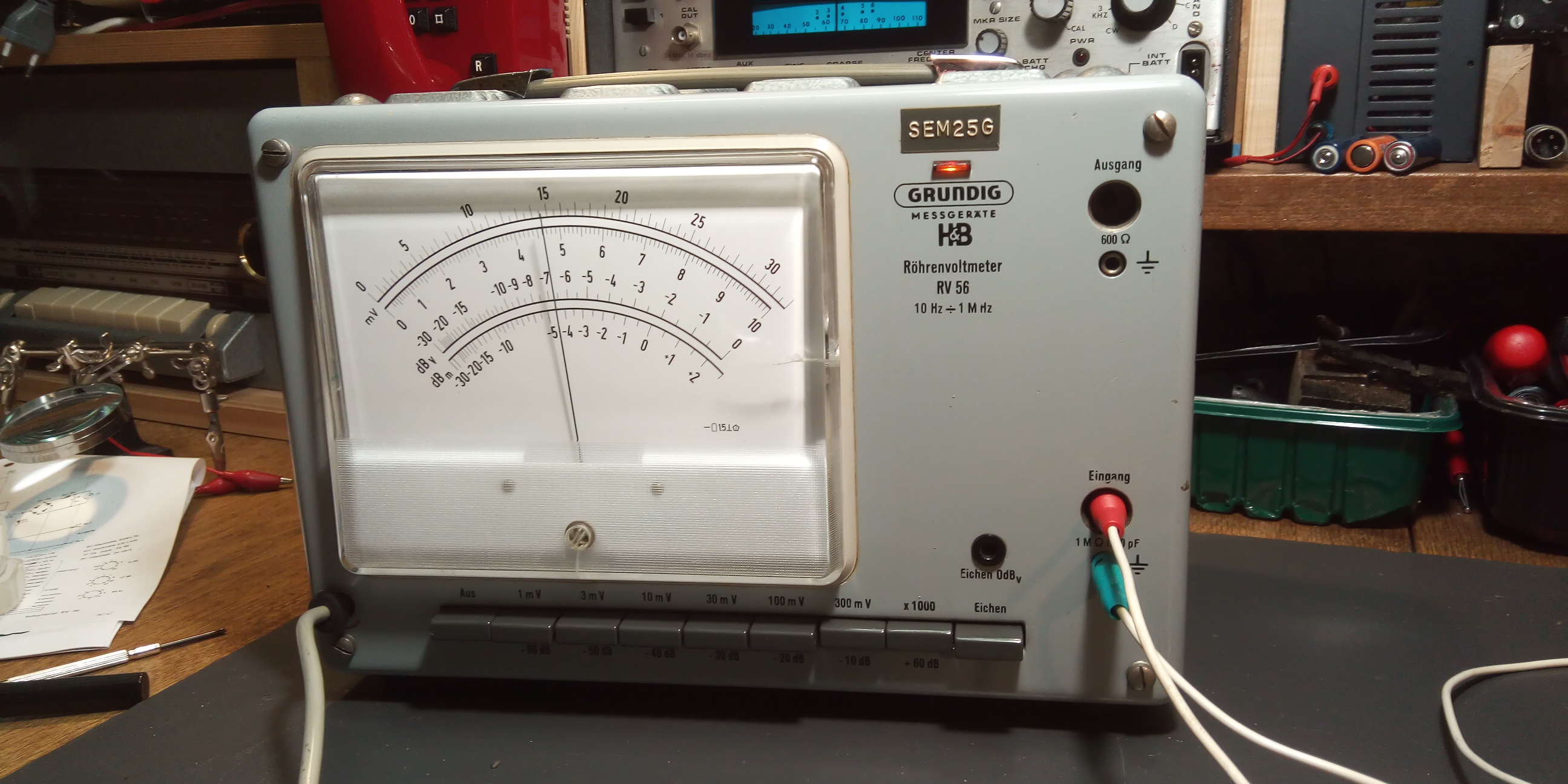das Röhrenvoltmeter Grundig RV 56 ist nur für das Messen von Wechselspannungen geeignet. Unter https://archive.org/details/manual_RV56_...DIG_DE/mode/2up befindet sich das Handbuch. Das Gerät hatte ich als Junge Mitte der 1970er Jahre erstanden. Schon damals hatte das Skalenglas aus Kunststoff rechts einen Riss.