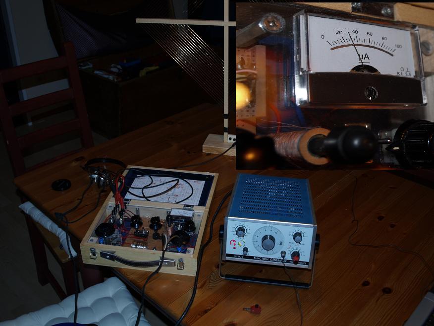 da hast Du schon recht was die Empfindlichkeit des uA- Instruments angeht. Aber bedenke, dass die Diodenspitze ja direkt an die HF- Quelle geführt wird. So habe ich den Schnüffler jedenfalls verstanden. Ich hatte mal Abstimmversuche mit einem 1MHz Frequenzgenerator gemacht um die Resonanzbreite und die Frequenz von Detektorgeräten zu bestimmen. Dabei steckte der Generator in der Antennenbuchse. Die Masse war nicht angeschlossen. Allerdings hat das abgebildete Gerät ja einen Schwingkreis und war nicht unabgestimmt wie der Schnüffler. Das abgebildete Meter ist ein Billigtyp vom blauen C und dient als Abstimmhilfe.