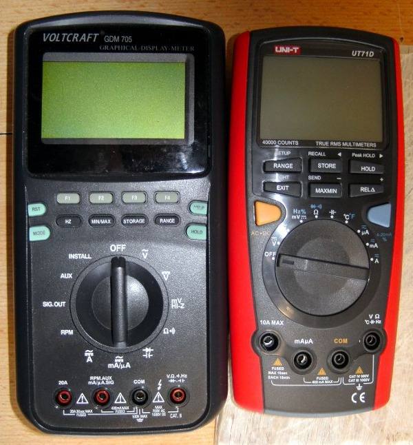 Heute mein neues DMM angekommen. Das alte kann in Rente gehen. Neben der Unhandlichkeit war die Stromversorgung beim Alten ein Problem: 6 Akkus oder ein Netzteil wurden gebraucht. Das neue braucht nur eine 9 V Batterie. Ich schätze den Unterschied > 15 Jahre zwischen dem alten Voltcraft und dem neuen UNI T. Das Voltcraft hatte eine Oszi - Funktion die natürlich sehr einfach war, brauchbar nur im NF Bereich. Das war der damalige DMM Star beim gr. bl. C. Für Widerstandsmessungen oder eine Durchgangsprüfung nehme ich sehr gerne auch ein altes Analoggerät.
