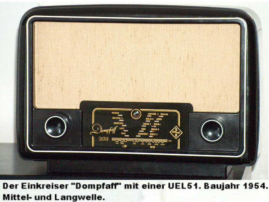 Nach dem Krieg war der Bedarf an preiswerten Empfängern hoch. Es wurde Anfangs mit vorhandenen Restteilen, Wehrmachtsröhren und mit Vorkriegsröhren der A- Reihe eine Gerätefertigung realisiert. Etwa 1950 kam der vom Funkwerk Leipzig entwickelte Einkreiser 1U11 in die Fertigung und wurde in Leipzig, Berlin und Stassfurt hergestellt. Aufgebaut ist das Gerät mit der in Erfurt neu entwickelten Röhre UEL51, hat eine induktive Abstimmung und ist das erste im Preßstoffgehäuse eingebaute Gerät aus der Fertigung der DDR. Empfangen werden Lang, Mittel und Kurzwelle, die Bereichsumschaltung erfolgt über den Skalentrieb. Damit steht für jeden Wellenbereich ein Drittel der Skalenlänge zur Verfügung.
