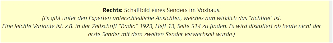 Und wennschon... Der erste Sender wurde noch im Dezember 1923 ausgetauscht. Ein modulierte Meißner- Leistungsoszillator ist es in beiden Gerätschaften.