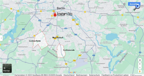 Ich habe in die Originalkarte von 1925, ganz unten, den Bereich "Mariendorf" eingefügt, ebenfalls in die moderne Karte. Die Empfangsorte liegen bei der Originalkarte also unter dem Kartenbereich.