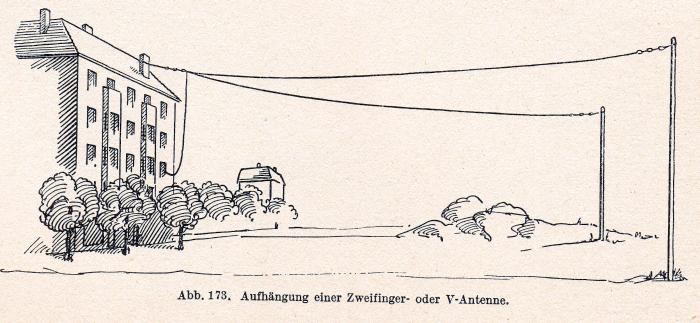 genau so ist es. Edi hatte aus seiner Sicht den richtigen Namen gewählt. Allerdings ist die V-Antenne heute auch als symmetrische KW-Antenne bekannt, die oben auf der Höhe der beiden Schenkel eingespeist wird. Allerdings machte man diese Antennen (z.B. seinerzeit in Usingen) ähnlich lang wie die Rhombus Antennen, also mehrere Lambda. Als anfangs dann noch ein Koaxkabel und ein UNUN ins Spiel gebracht wurde, gingen bei mir alle Alarmglocken an. Letztlich kam es zum Glück nicht dazu. Für Mittelwelle ist das eine passable Empfangsantenne. Zum Senden würde man sie nicht nehmen. Die Skizze aus dem Buch zeigt auf, auf was es noch ankommt: Gute Isolation und einen Abstand zur Hauswand. Die Anpassspule auf der Fensterbank muss eine verlustarme Stegspule ohne MW-Eigenresonanz nach Masse sein, die eine Induktivität von 80 ... 110 Mikrohenry haben muss. Man sollte sich bei Wikipedia das Bild des NDB Bottrop ansehen. Es versorgt einen Radius von knapp 60 km mit der Mindestnutzfeldstärke und ist "handlich" klein. Momentan baue ich ein hoffentlich verlustarmes Variometer, um später auf 472 kHz zu senden.