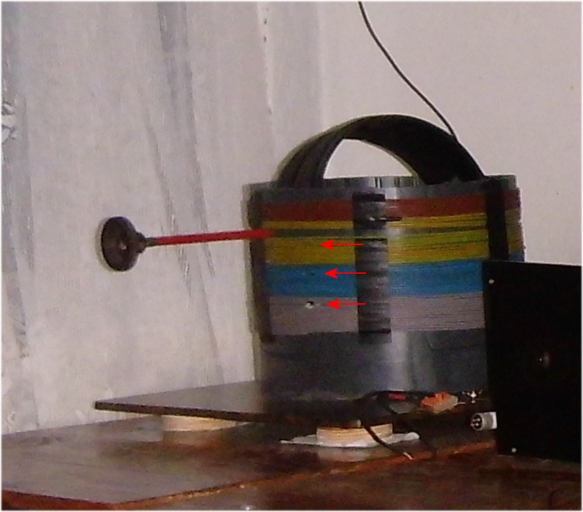 Ist nicht auf, sondern vor der Fensterbank, Stegspule ist es leider nicht, aber 48 Wdg., bei je 12 Wdg. angezapft, tatsächlich ist die gewählte Anzapfung die zweite, bei 115µH, einstellbar mit der inneren Spule als Gegeninduktivität.