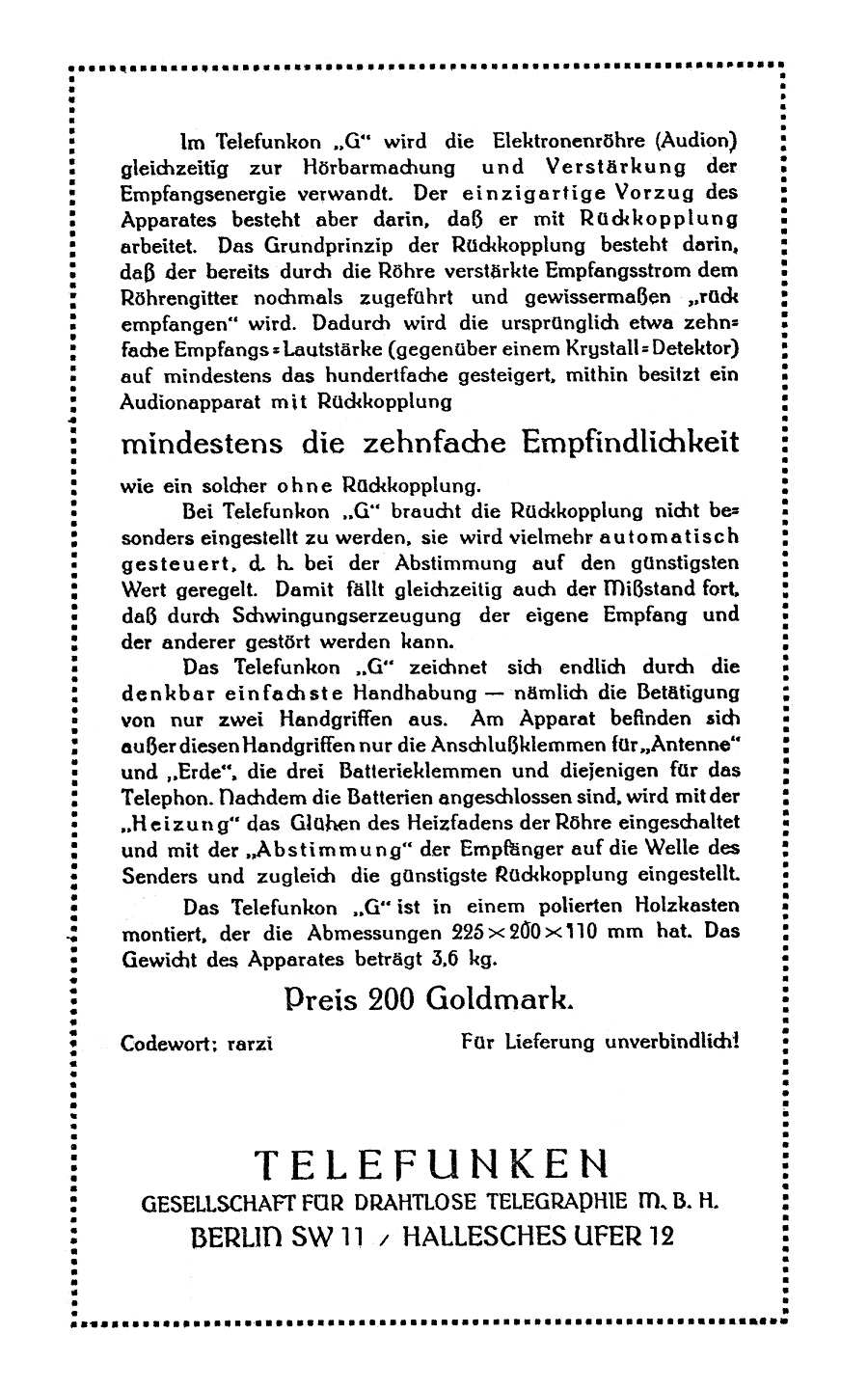 Letztens war ich auf der Radiobörse in Driebergen (NL). Dort wurde ein SIEMENS Einbereichsaudion 21G für 125 Euro angeboten. War mir noch zu teuer, hab' ich stehen lassen, weil der Verkäufer auf mein Angebot von 100 Euro nicht einging.....