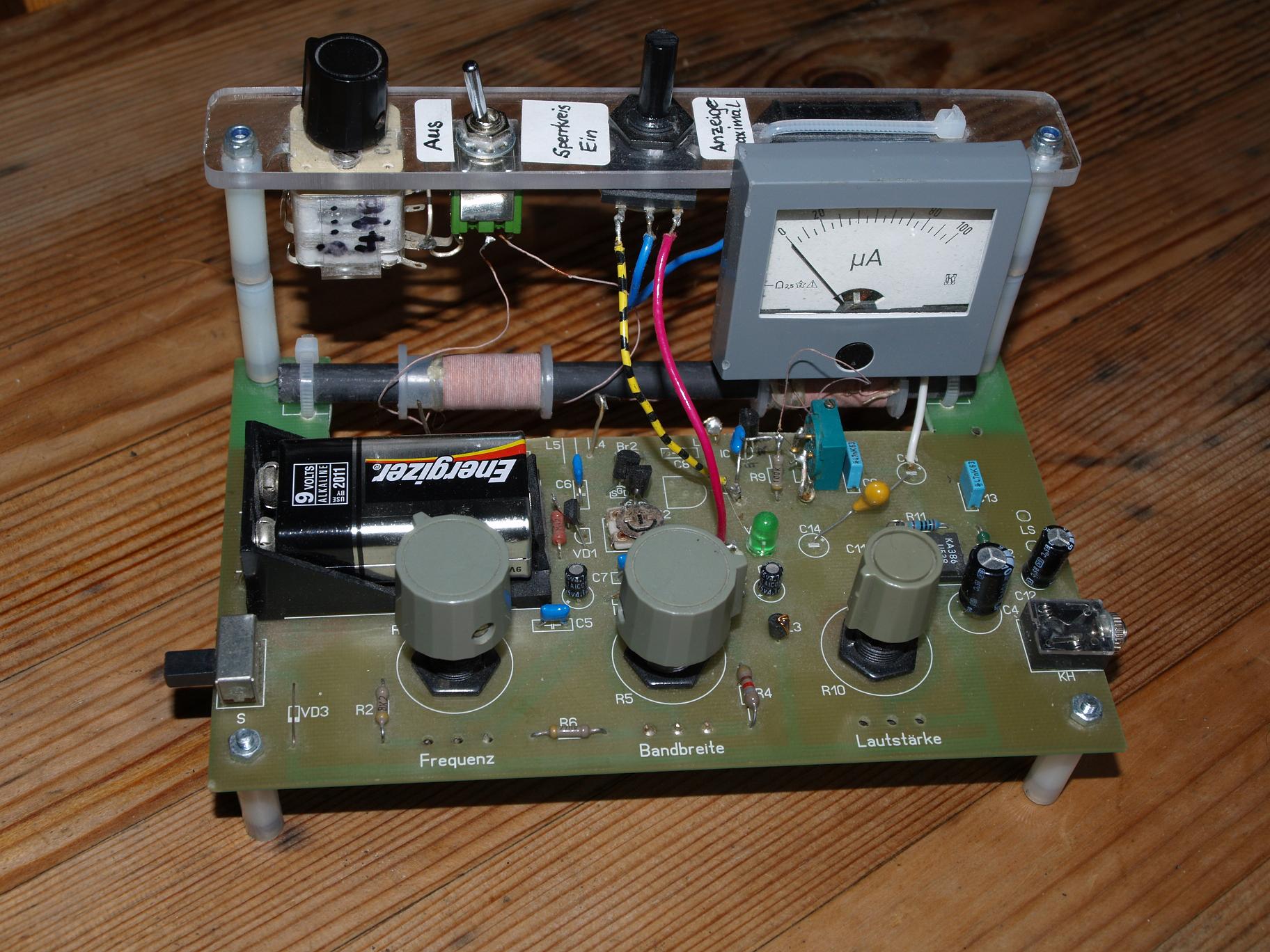Sperrkreis, Schalter und uA- Meter nicht im original Bausatz.