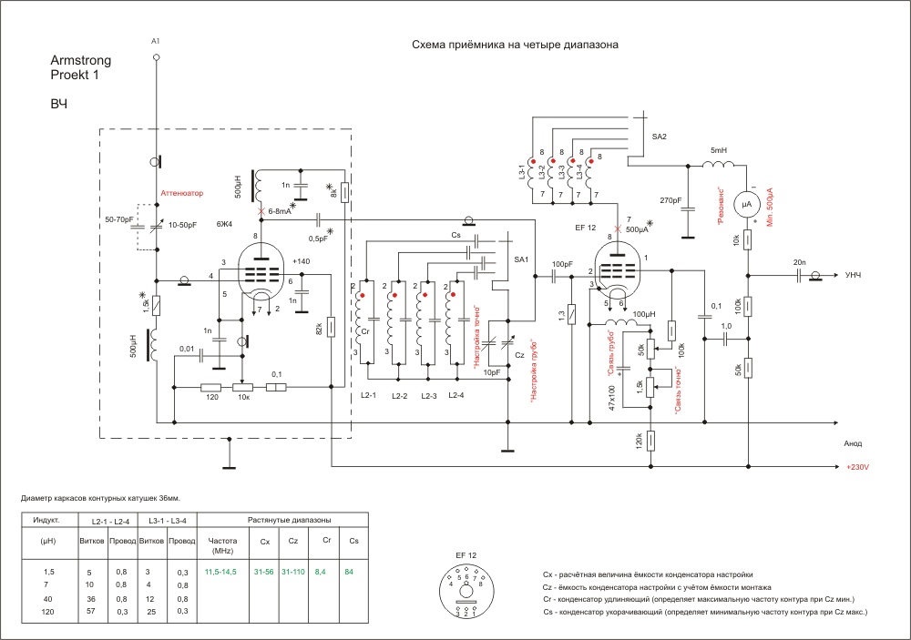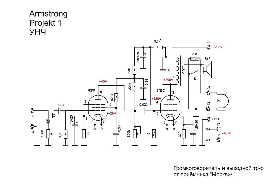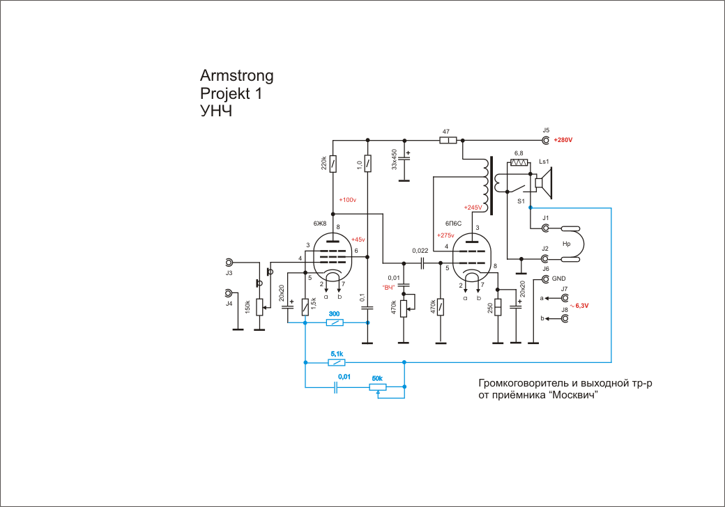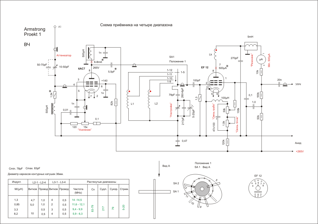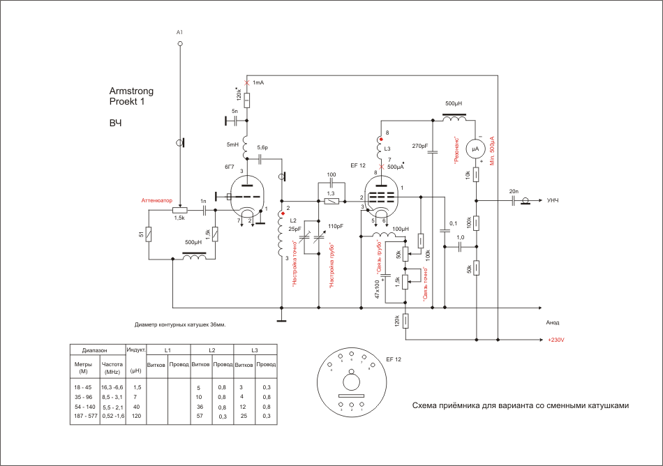Ich bin auf die Idee gekommen eins Retro-Radio zu bauen nach Prinzip vom Armstrong. Ziemlich langere Zeit habe ich ein passender Schaltplan gesucht, und dann endlich gefunden. Es war eines bekante, in 50-ge Jahre, und mehr mall nachgebaute Model.