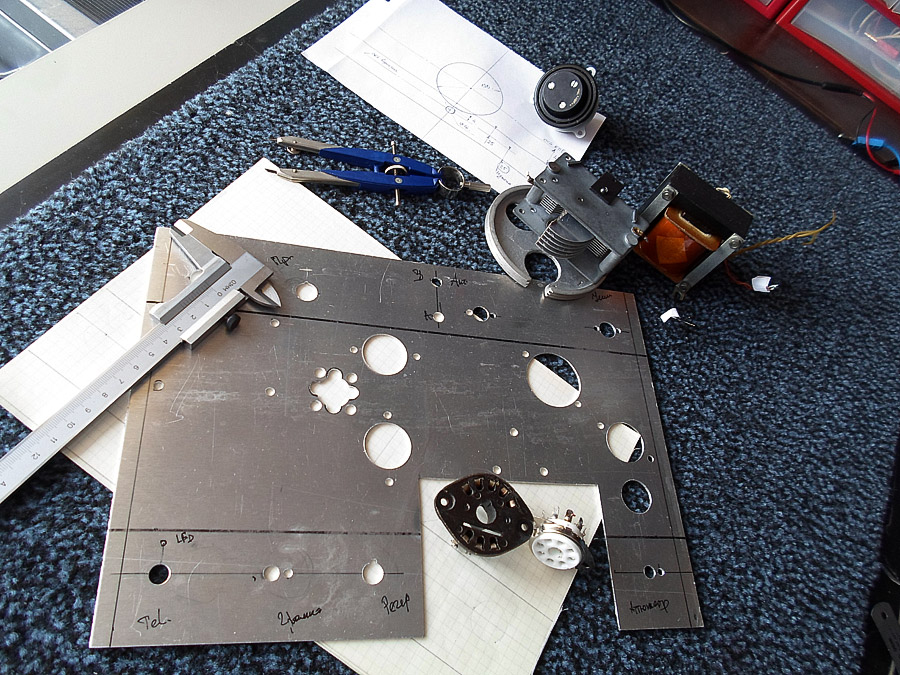 Wichtig war das ale Teile müssten alt sein. Also nichts modernes. Der NFV hat mir nicht so gut gefallen und ich habe im verändert. Die Netzteil sollte auch mit Röhre sein. Dreikondensator war auch "modernisiert" Alles auf Makelplatte.