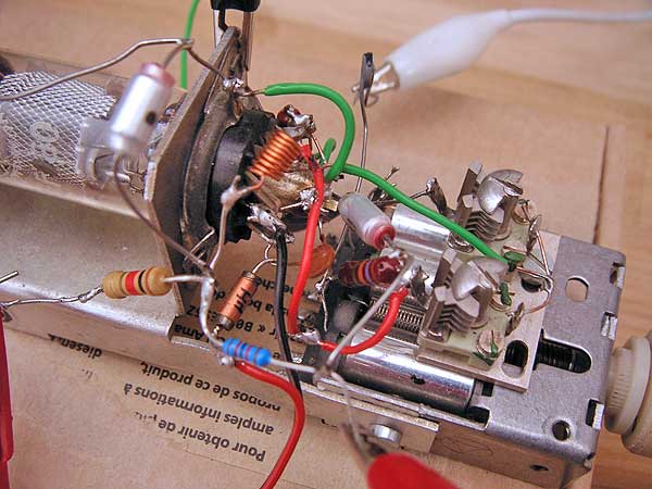 Was jedoch schon mal festzustellen ist: Handempfindlichkeit und Abstrahlung über die Antenne sind gering, die Frequenzstabilität ist ausreichend hoch, man muss praktisch nicht nachstimmen. Der Vorteil der Brückenschaltung: Keine Abstrahlung von HF über die Antenne, wenn die Brücke selbst abstrahlungsfrei aufgebaut ist. Dazu habe ich das Mehrfachvariometer aus einem alten (vermtl. Blaupunkt) Autoradio benutzt, dass ich hier im Forum schon mal vorgestellt habe.