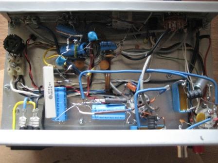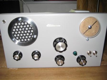 Der Schaltplan ist auf Volkers Web-Side. Audion mit ECC85 und ECL86. Die Spule hat 180µH, 150 Windungen bei 120 Abgriff für die Rückkopplung (0,2Cul). 10 Wdg. für die Antenne (0,5Cul). Der Draht ist wohl nicht optimal, der Empfang aber der Hammer. Hatte damals keine Litze und wollte mal was probieren. Da passt wieder mal die Aussage meines Bruders. Messen kann ich den Drehko nicht. Ist aus einen DDR Radio. RFT Strelasund. Schaltplan vorhanden, aber keine Kapazitätsangabe beim Drehko.
