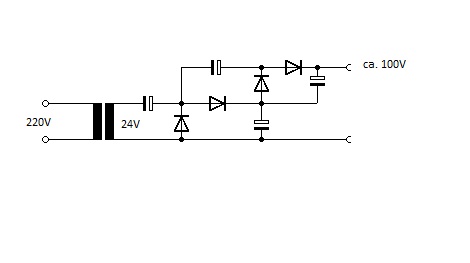 Zwei Schaltungen habe ich bisher gefunden, eine Vervierfachungsschaltung und ein Netzteil.