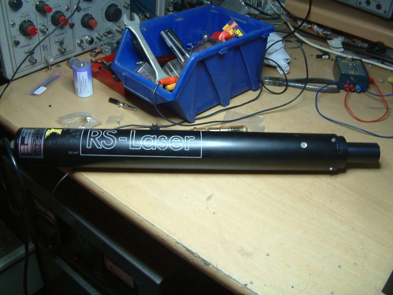 hallo Norbert, er hat leider keine diesbezügliche Beschilderung mehr, ich geh aber davon aus es hält sich noch in Grenzen. System = Helium-Neon-Laser. Der hat vorne einen Diffusor, wenn man den abdreht kommt er genau auf den Punkt. Ich vermute das ist die ältere Bauart für Waffenzielsysteme, also eher harmlos. Der Hersteller ist bekannt für gute Systeme
