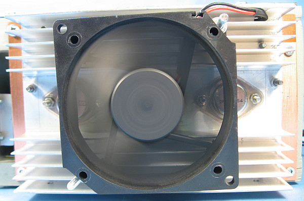 3. Der Lüfter am Kühlkörper läuft jetzt ständig mit gedrosselter Drehzahl bei 5 Volt und somit fast unhörbar. Die Temperatur erreicht jetzt höchstens 30 °C. Das ist viel besser als die recht belastende Zweipunktregelung zwischen 50 ° und 40 °C. Oft reicht eine sehr geringe Drehzahl zur effektiven Kühlung. Die meisten Lüfter laufen unnnötig schnell. Das hat mir mal ein Entwicklungsleiter im Senderbau verraten. Sollte die Kühlkörper die 50 °C überschreiten, schaltet sich der Temperaturschalter und der Lüfter fängt mit voller Drehzahl an zu drehen.