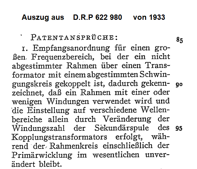 Re: Eine Rahmenantenne mit nur zwei Windungen : D.R.P. 622980