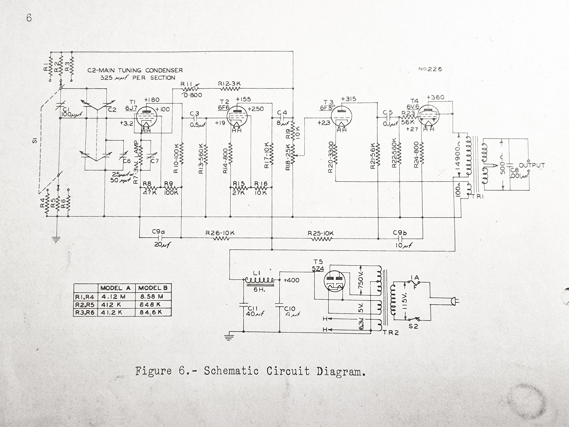 du hast Recht. In dieser Schaltung steckt viel Entwicklungsarbeit. Für die 6J7 könnte man eine EF80 nehmen und für die 6F6 eine EL84. Bei R7 handelt es sich um eine 3 Watt Glühbirne. Ich nehme an für 110 Volt. Da muss man wohl etwas experimentieren. Ich habe noch einen Drehko 2 x 350 pF mit Untersetzungsgetriebe. Alles hinter dem R18 Poti kann man sich sparen. Das Netzteil wird mit Halbleiter-Gleichrichtern verwirklicht. Auf die Drossel L1 kann man wohl verzichten und durch einen Widerstand 100 Ohm ersetzen, da man auf die Endstufe verzichtet.