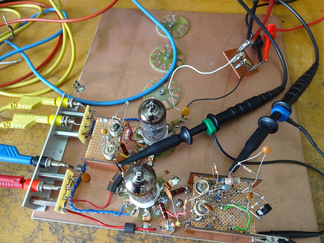 in der Zeit, in der, wie bereits geschrieben, der ZF-Verstärker auf Eis liegt, habe ich mich mit dem Mischteil des UKW-Radios beschäftigt. Den Versuchsaufbau habe ich gemäß der "bastlerfreundlichen" Vorlage des Nogoton-Einbausupers gestaltet zumal die entsprechenden Röhren bei mir vorhanden waren.