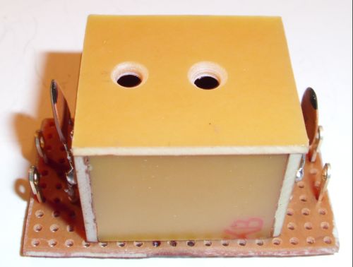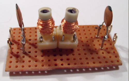 Ich habe die Abschirmung noch etwas verkleinert; die Kondensatoren bleiben außerhalb der Abschirmung, damit ich sie ggf. verändern und anpassen kann. Ich habe jetzt zwei identische ZF-Filter gewickelt und in mein Test-Superhet eingebaut. Geht gut; die Filter lassen sich gut abgleichen.