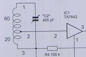 Wenn der TA7642 ständig mit 1,5 bis 2V versorgt werden kann (z.B. Akku), lohnt es sich den Schwingkreis bei ca. 1/3 der Windungszahl, vom kalten Ende der Spule anzuzapfen. Die Trennschärfe wird noch besser, aber auch die Lautstärke kleiner. Eine einstufige Transistorverstärkung sollte dann zusätzlich integriert werden.