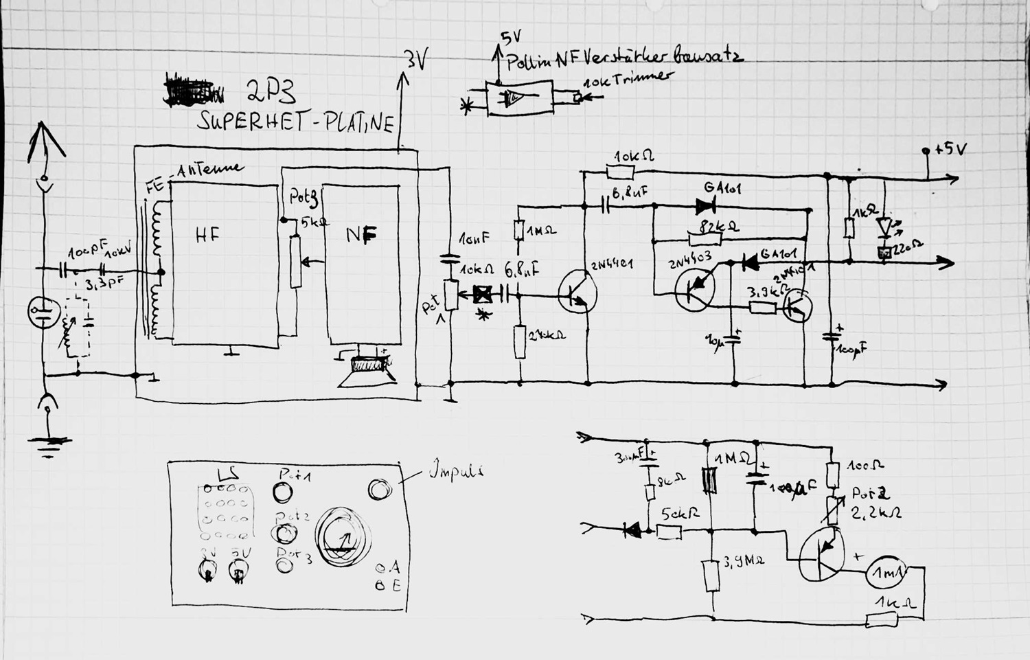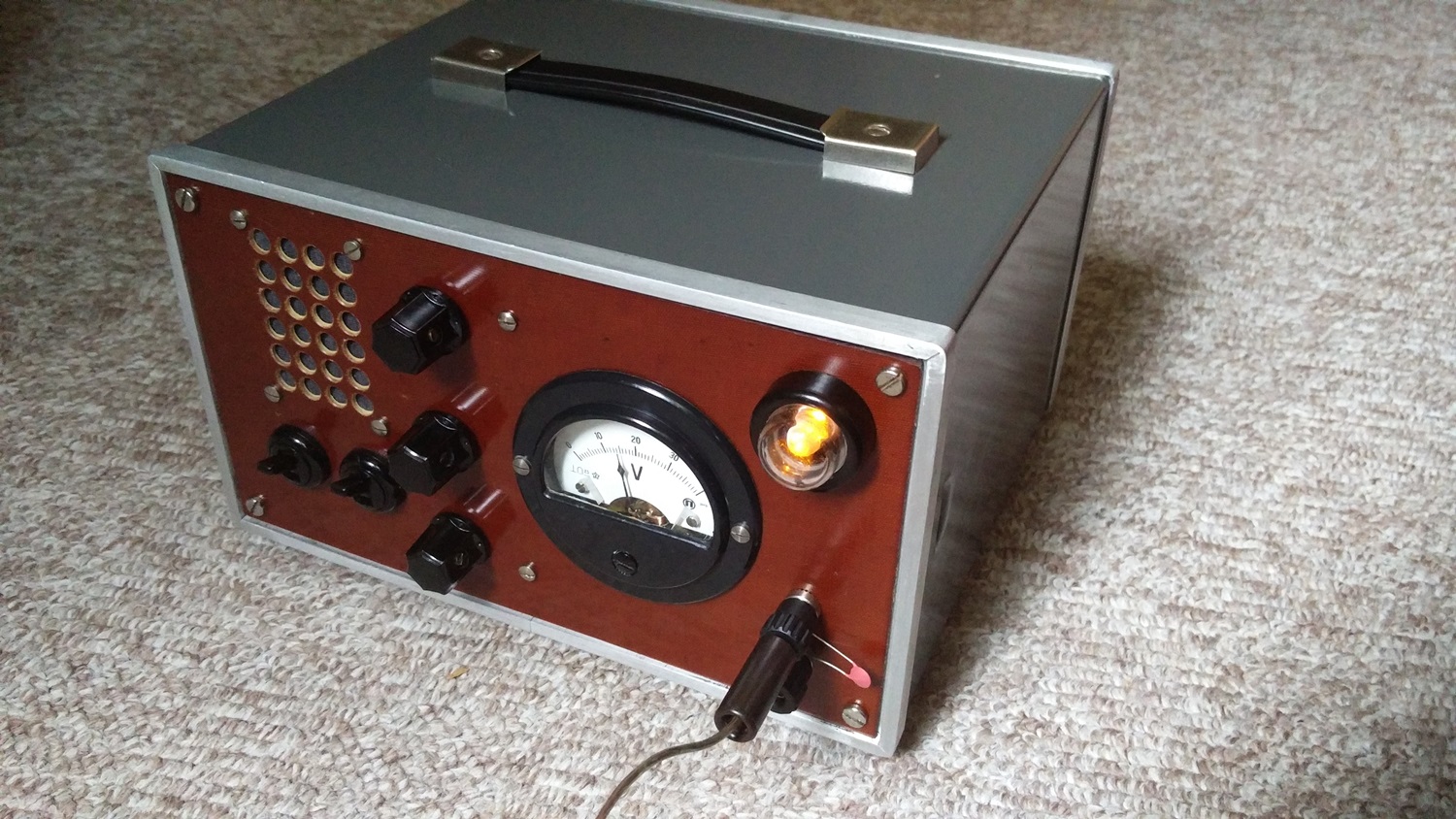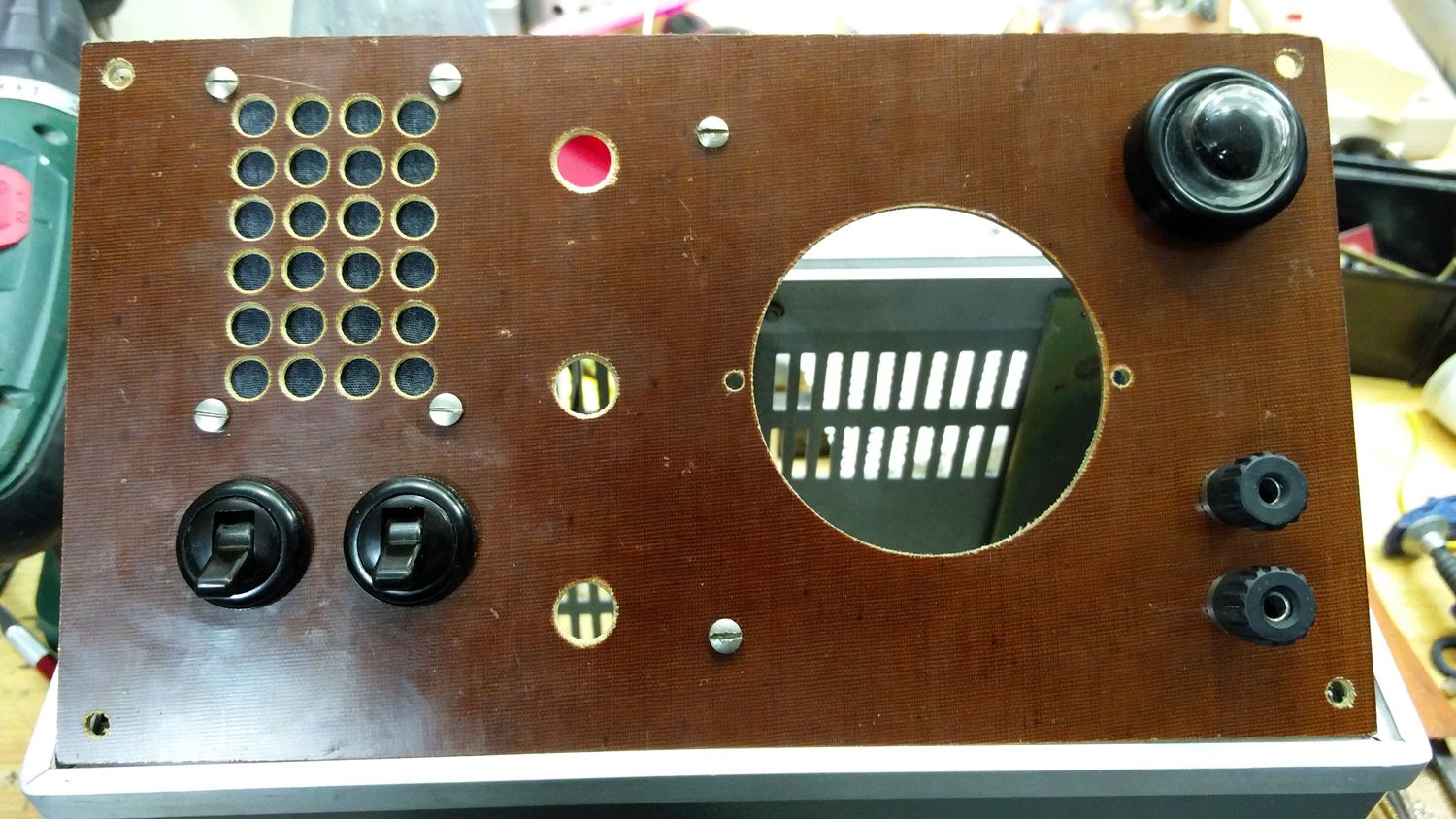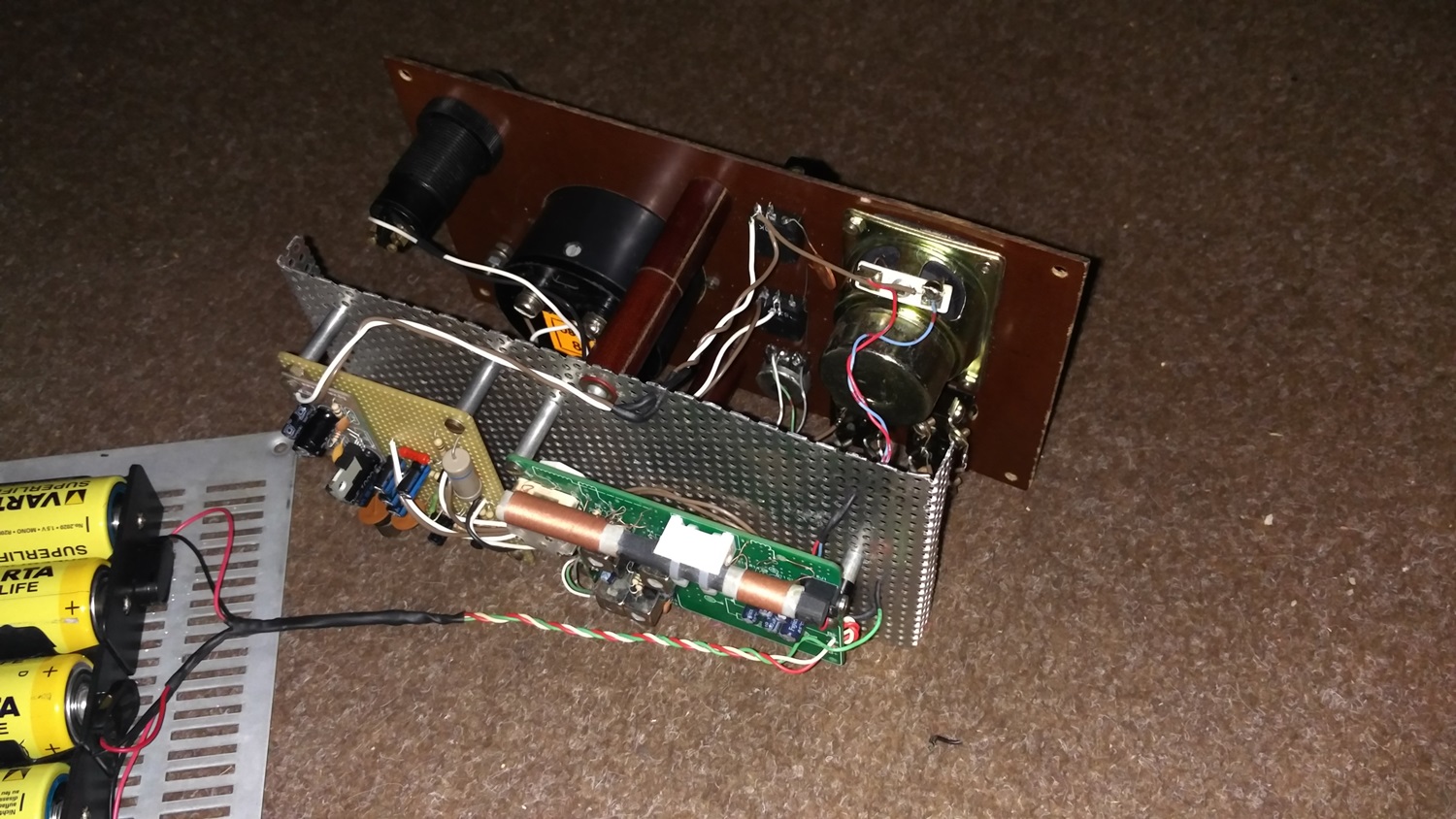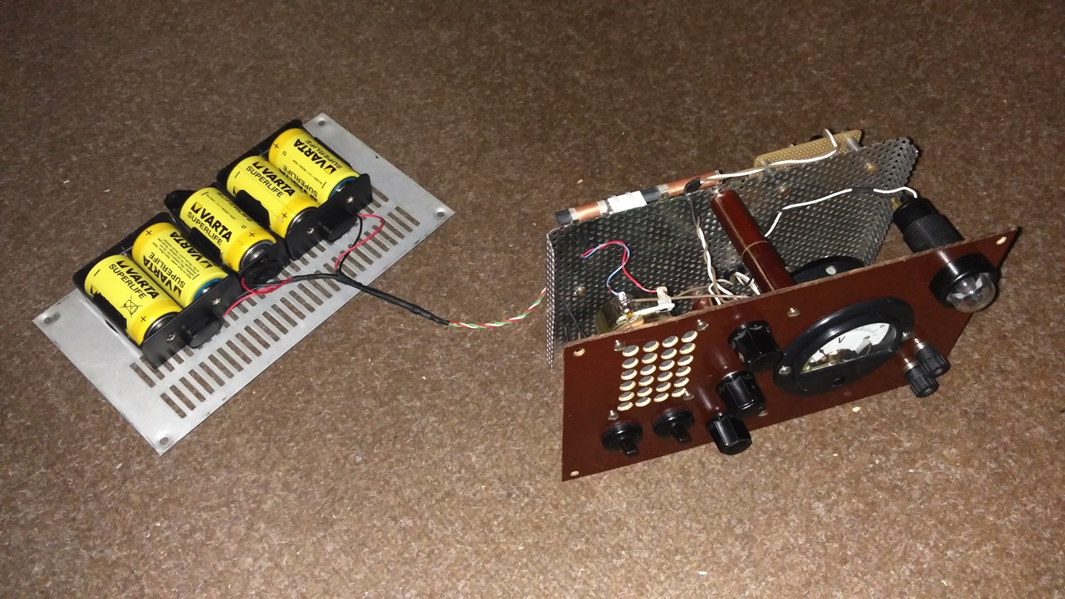Im Zusammenspiel mit der 2P3 Superhet Platine, montiert auf original opa.wolle-Lochblech: