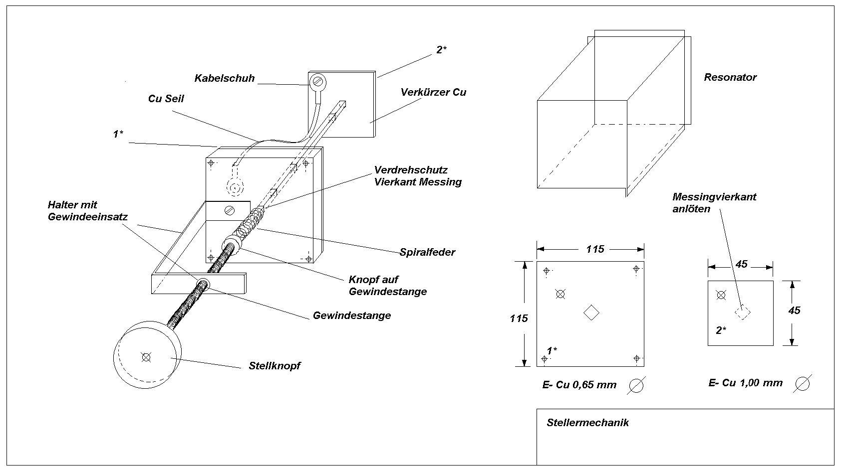 Hier die ersten Planungen. Der Steller ist in seiner hinteren Länge, etwas überdimensioniert dargestellt. Die Spule und die Ein- und Auskopplung kommen auf eine weitere Zeichnung. Achtung Anreißlinien nicht im Innenraum setzen!