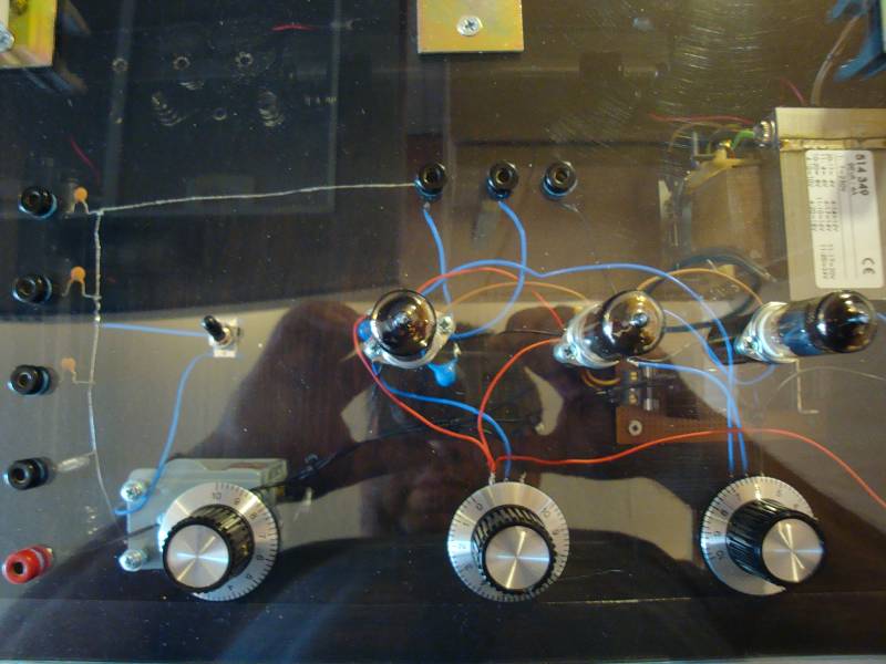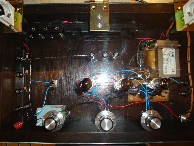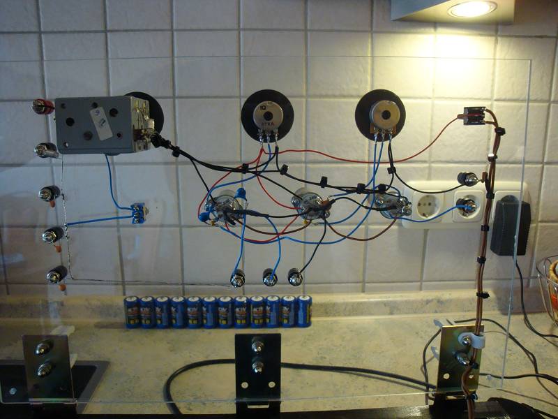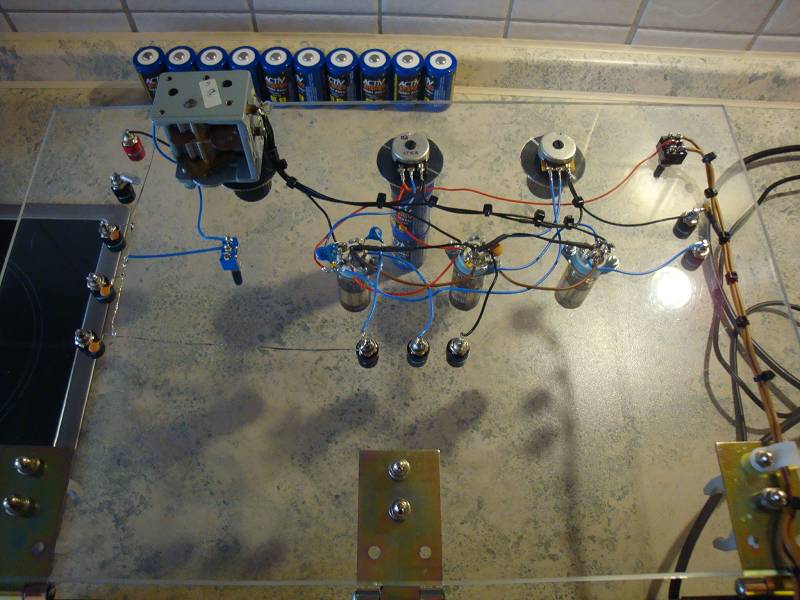 Bei dem Drehko bin ich mir nicht sicher. Der blaue Draht eines Plattenpaketes geht unter dem Drehko vorbei und erst dann zum Umschalter. Das sieht sauber aus aber der Draht geht an viel Masse vorbei.