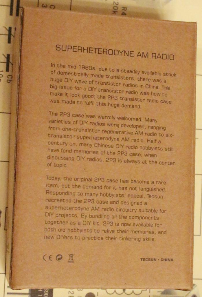 Danke Ingo, das Gerät ist ja wesentlich interessanter als ich dachte! Nett finde ich auch die Geschichte auf der Rückseite des Kartons, das wertet diesen Bausatz nochmals auf. Mir sagte 2P3 bislang nichts, interessant, dass dieses Gehäuse in der VR China eine Geschichte hat. Jetzt werde ich mir wohl auch so einen Bausatz zulegen "müssen".