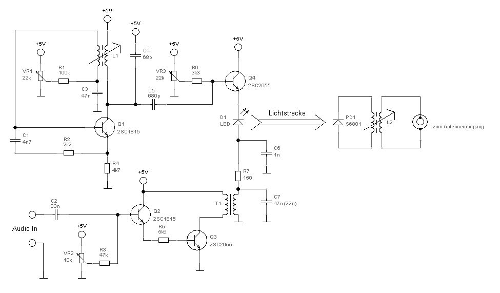 Was die Optik angeht, Deine Idee, die Linsen eines Fernglases zu verwenden, hatte ich auch schon. Es wäre auch eine Idee, im 'Aussenbereich' für eine grosse Übertragungsstrecke auf der Empfängerseite ein Fernrohr zu verwenden. Mir reicht es aber schon, wenn ich 'im Raum' meine alten Radios versorgen kann.