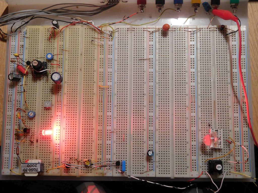 habe mir jetzt mal Zeit genommen und meinen Lichtübertrager neu aufgebaut. Ohne spezielle Optiken funktioniert er in einer Distanz von 25cm sehr gut. Bei 50cm rauscht es aber schon. Da ich den Empfänger ohne zusätzliche Elektronik (ausser Spule und Photodiode) verwenden möchte, werde ich das Licht der LED mit einer optischen Linse bündeln müssen. Das hat noch den Vorteil, dass man Fremdlicht weitgehenst ausschliessen kann. Mal sehen, wie weit ich kommen werde. Ich habe mal ein Bild von meinem wilden Aufbau, auf einem Steckbrett, hochgeladen. Sieht wirklich noch echt wild aus, aber es funktioniert schon. Übrigens, für die Oszillatorspule habe ich den gleichen Typ verwendet wie für das Empfängerteil, da ich hier für einen hohen Ausgangspegel in Resonanz kommen muss. Das Audiosignal moduliere ich mit einem Trafo, der mal als Ausgangstrafo in einem Transistorradio gedient hat.
