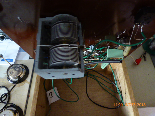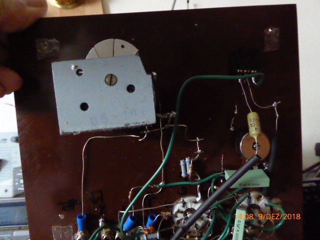 Da ein 2x 500er Pf Drehko verbaut ist, konnte ich den Drehknopf nicht wie angedacht verwenden, da dieser eine 90 Grad Drehung hat, meiner aber mehr. Aber geht.