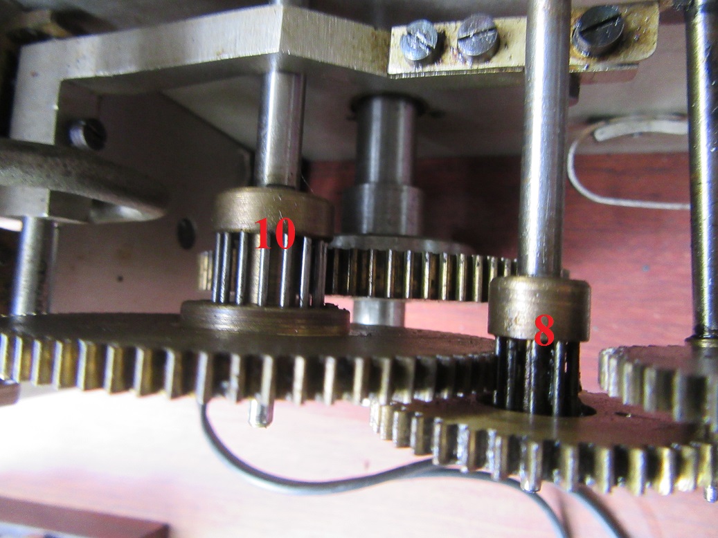 8. Zahnrad klein mit Stiften auf Achse Zahnrad 7: d = 8,7mm / 10 Stifte / Stiftdurchmesseser 1mm