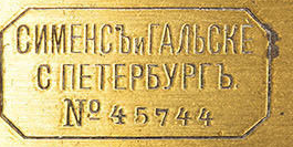 auf der Siemensseite h t t ps ://new.siemens.com/global/de/unternehmen/ueber-uns/geschichte/news/siemens-russland.html fand ich folgenden Eintrag. Das passt sehr gut dazu... aber eigentlich müsste es sich um St. Petersburg handeln. Siehe unten...