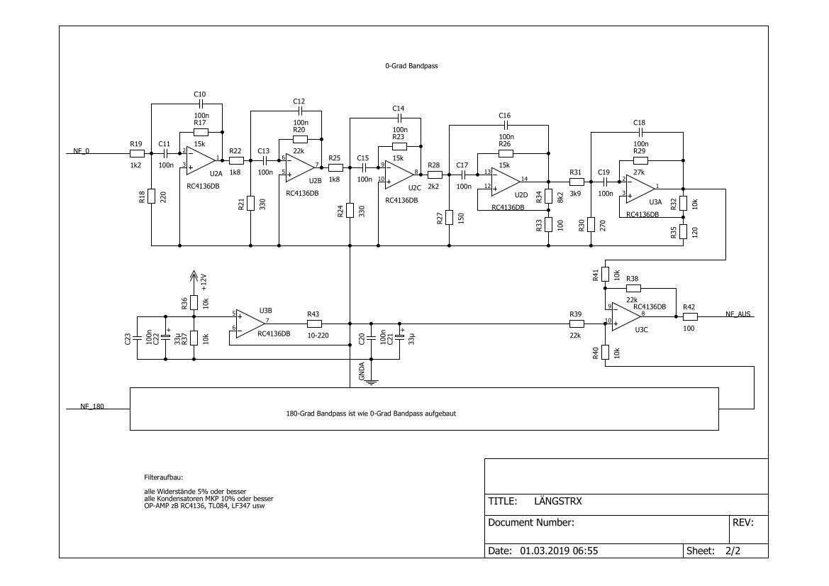Um etwas zum Thema beizutragen möchte ich hier das NF-Filter des Radios vorstellen: Das NF-Filter ist, wie in der Schaltung angedeutet, zweimal vorhanden denn der Mischer im Radio erzeugt Gegentaktsignale, die separat gefiltert werden.