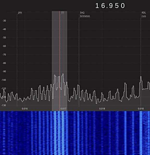 Danke für Deine Mühe mit der Darstellung das Audiofiles in Fldigi - sehr interessant. Ob es sich bei dem Signal auf 16,8 wirklich um FTA handelt, wird je nach Quelle verschieden bewertet. Dachte bisher eigentlich auch, daß dem so wäre aber Genaues weiß man offenbar nicht. Verschiedentlich wird das Signal als "unid" deklariert und wirklich auf 16,8 scheint es nicht zu liegen. Am SDR sieht die Situation bei mir so aus: