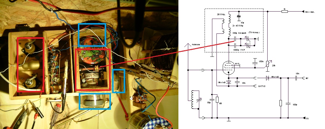 bin im Urlaub und nur mit Smartphone bewaffnet, trotzdem kurzer Hinweis zur Frequenzmessung beim schwingenden Audion: siehe dazu meine Artikel "Nutzung des Schirmgitters beim Pentoden-Audion", Teile 1 und 2 hier im WGF, sollte bei dieser Schaltung auch gut funktionieren.
