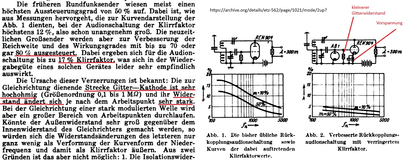 Es ist offensichtlich nicht egal, ob man eine seperate Diode oder die Gitter-Kathoden-Strecke des Audions verwendet.
