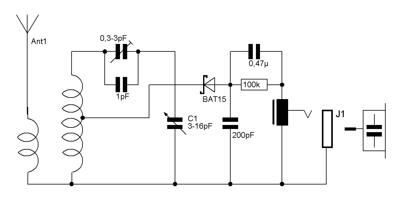 Als mobiles Gerät finde ich den Detektor aber auch sehr faszinierend. Eine Frage zur Kopfhöreranpassung Deiner Schaltung. Du benutzt, auf dem Bild erkennbar, ja einen Kristallhörer. Der ist ja schon besonders hochohmig und belastet den Detektorkreis wenig. Ich hätte hier einen dyn. Hörer mit mit 100-500Ohm erwartet. Hat Dir das echt einen Lautstärkegewinn gebracht, ist die Selektivität besser geworden oder ist der Übertrager optional für dyn. Kopfhörer gedacht ?