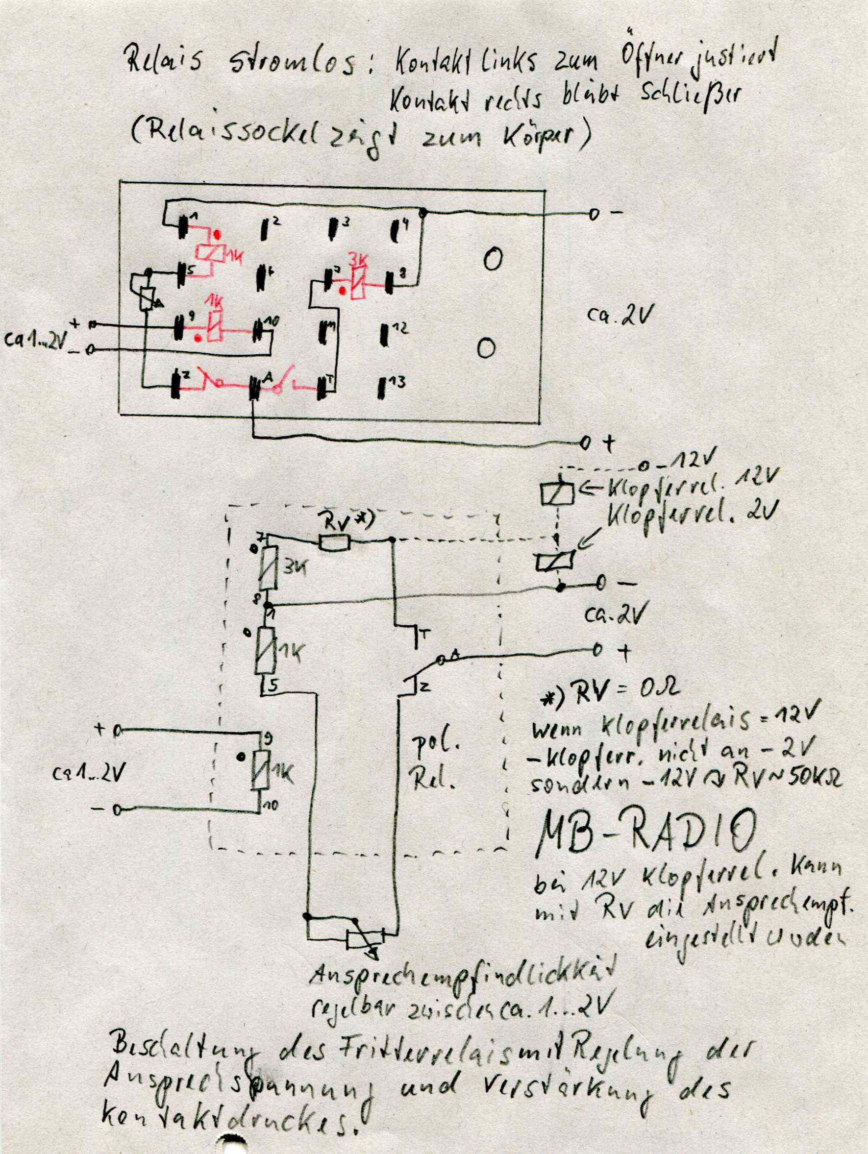 So, hier noch die Schaltung vom Fritterrelais Vergessen einzuzeichnen: Bei Verwendung eines 12V-Fritterrelais kommen die +12V natürlich mit an den +2V-Anschluß