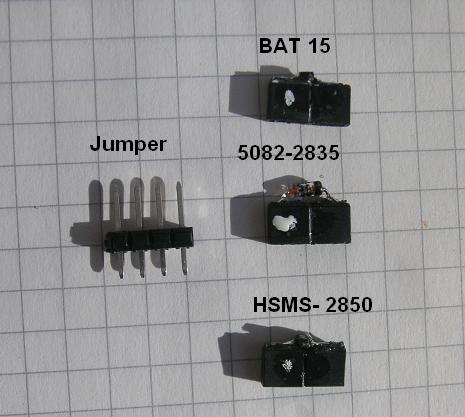 Die BAT15 zeigte noch bessere Ergebnisse. Ich konnte die Hörschwelle weiter nach unten setzen. Der Diodenknick liegt bei der BAT15 bei ca. 240mV und bei der 5082-2835 bei 290mV. Die HSMS 2850 (175mV) brachte einen richtigen Schub an Empfindlichkeit. Ich denke, das ist die Schottky-Diode die die besten Ergebnisse im UKW- Bereich liefert. Geniales Teil....teuer aber sehr gut ! Ich bin begeistert Die Dämpfung des Kreises nahm nur geringfügig zu.