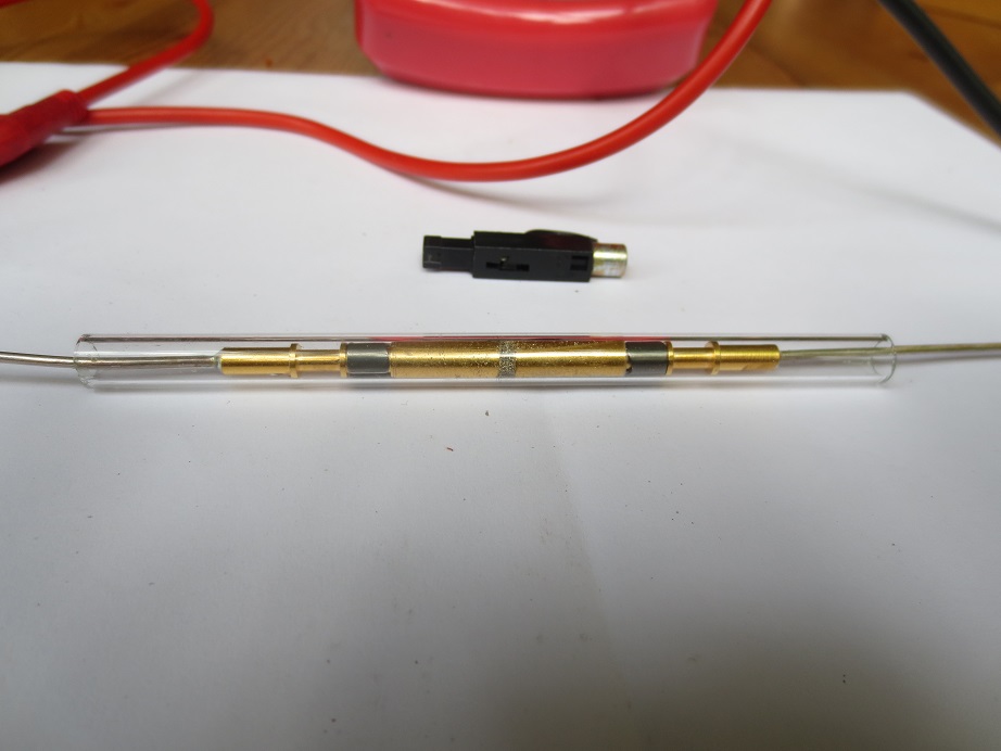 Nun habe ich einen zweiten Versuchsfritter No.3 aus einem 5mm Röhrchen aus dem Chemiebedarf gebastelt. Ein Messprovisorium....aber mit besten Zustaten. Elektroden aus Steckergoldkontakten. Zuleitungen aus Silberdraht. Ein reiner Messfritter für den Frequenzgenerator. Aufbau wie oben gezeigt.....nur ohne Klopfer. Als erfolgreich werden Übergangswiderstände bis 3k gewertet.