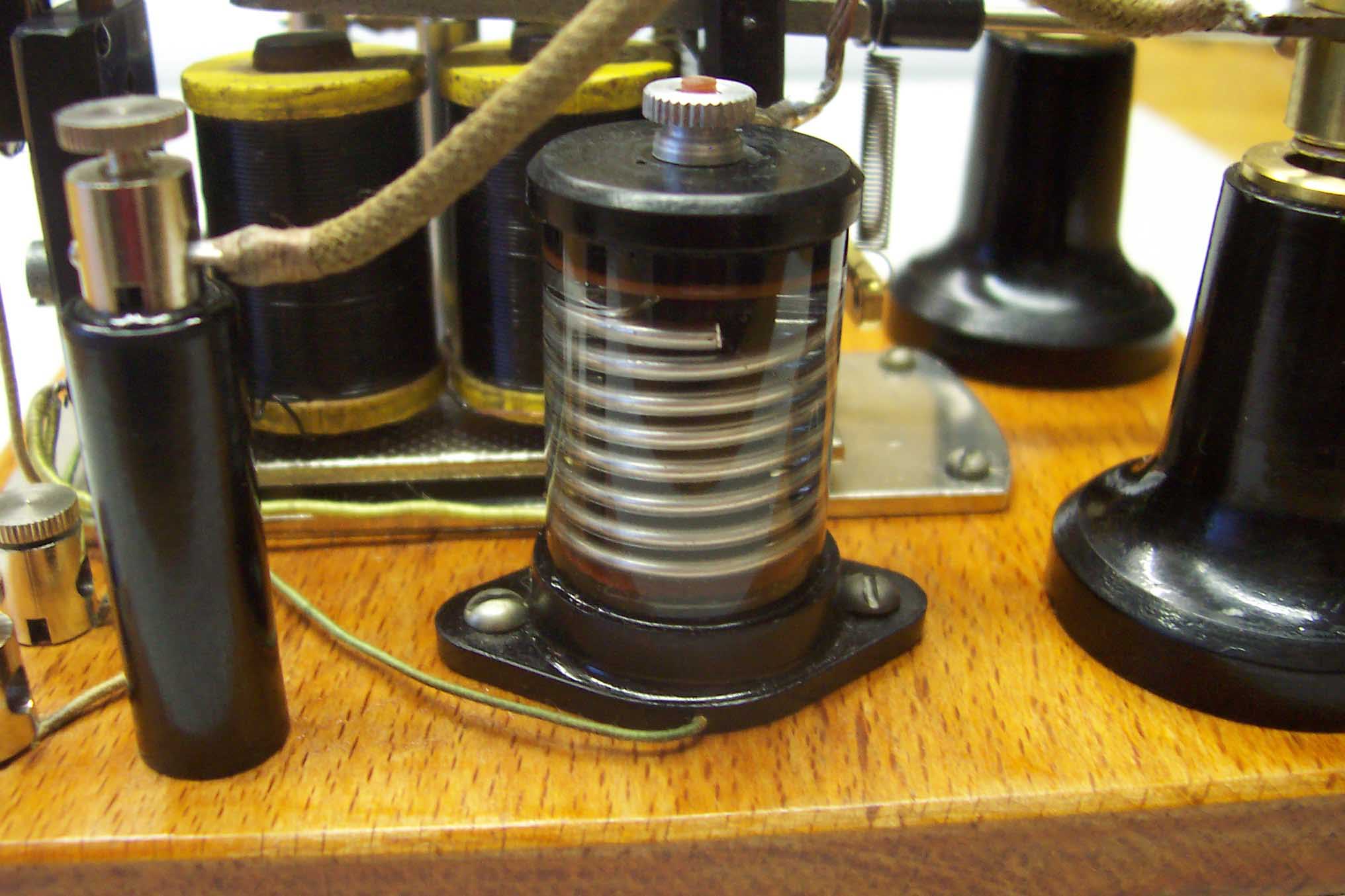 3. Ich habe nochmals die USA- Replik untersucht und musste feststellen, dass die Elektrodenstrecke für den richtigen Fernempfang einfach zu groß ist. Sie liegt im unteren Bereich bei ca. 2mm. Das ist zu viel für den Funken- HF- Fanatiker. 30-60V sind damit max. zu detektieren. Eine mannschaftsdienliche Einstellung um Marconi nachzuempfinden.