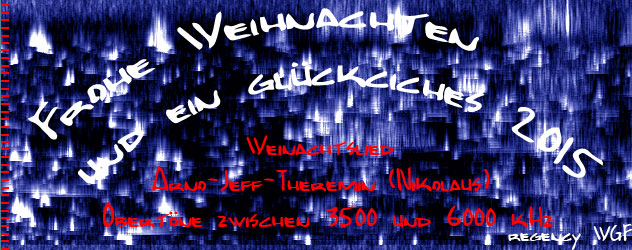 Hallo Arno und alle im WGF, Obertöne stehen für Klangfülle, das Nikolauslied hatte besonders viele davon. Hier passend zum Fest und Jahreswechsel die grafische Umsetzung basierend auf dem Spectran-Programm und der Einspielung von Arno-Jeff. Das Lied verläuft von unten nach oben (Sekundenmarker), die Frequenz von links nach rechts. Schöne Grüße, Jan (es sind Hz, nicht kHz, sorry).