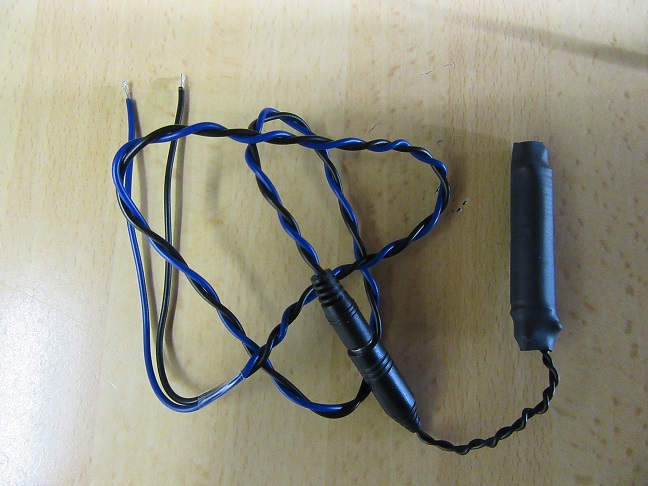 Nachtrag 30.12.16 Die Messung am Ferritstab ergab 30uH. Zuleitung ca. 50cm verdrillt. Flachferritstab 50mm lang. Spule nicht sichtbar, da mit Schrumpfschlauch gesichert. Übergabe / Trennung mit Klinkenstecker. Bild unten...